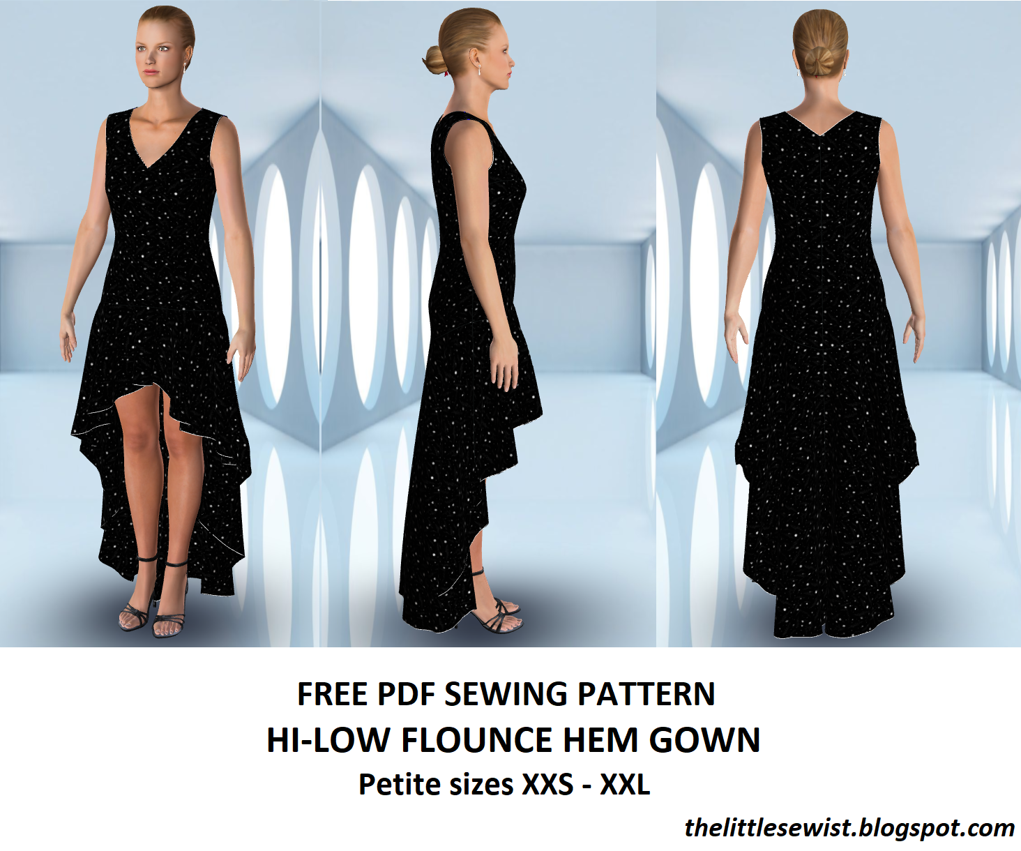 Now back to the pattern: you can download it here – the Hi-low flounce hem gown (petite size XXS-XXL).