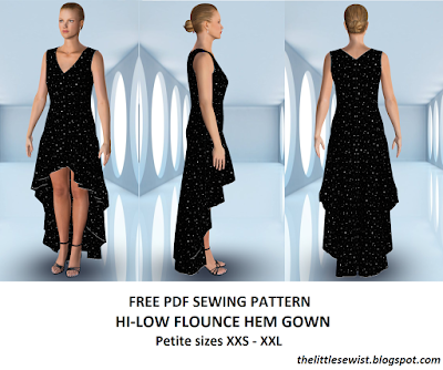 I am presenting the petite size version of the the pattern for the hi-low flounce hem gown, as promised. I really love it when I receive feedback from you, my dear readers.