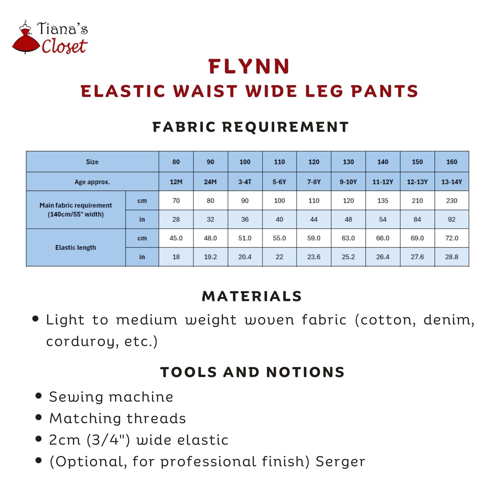 The Flynn elastic waist wide leg pants are comfy and trendy! Featuring a comfortable elastic waist, with the popular, stylish wide legs and vertical front seam detail, this beginner sewing pattern is a must have for fashion forward sewers. Make your young one a pair of Flynn pants and make them stay on top of the trend!