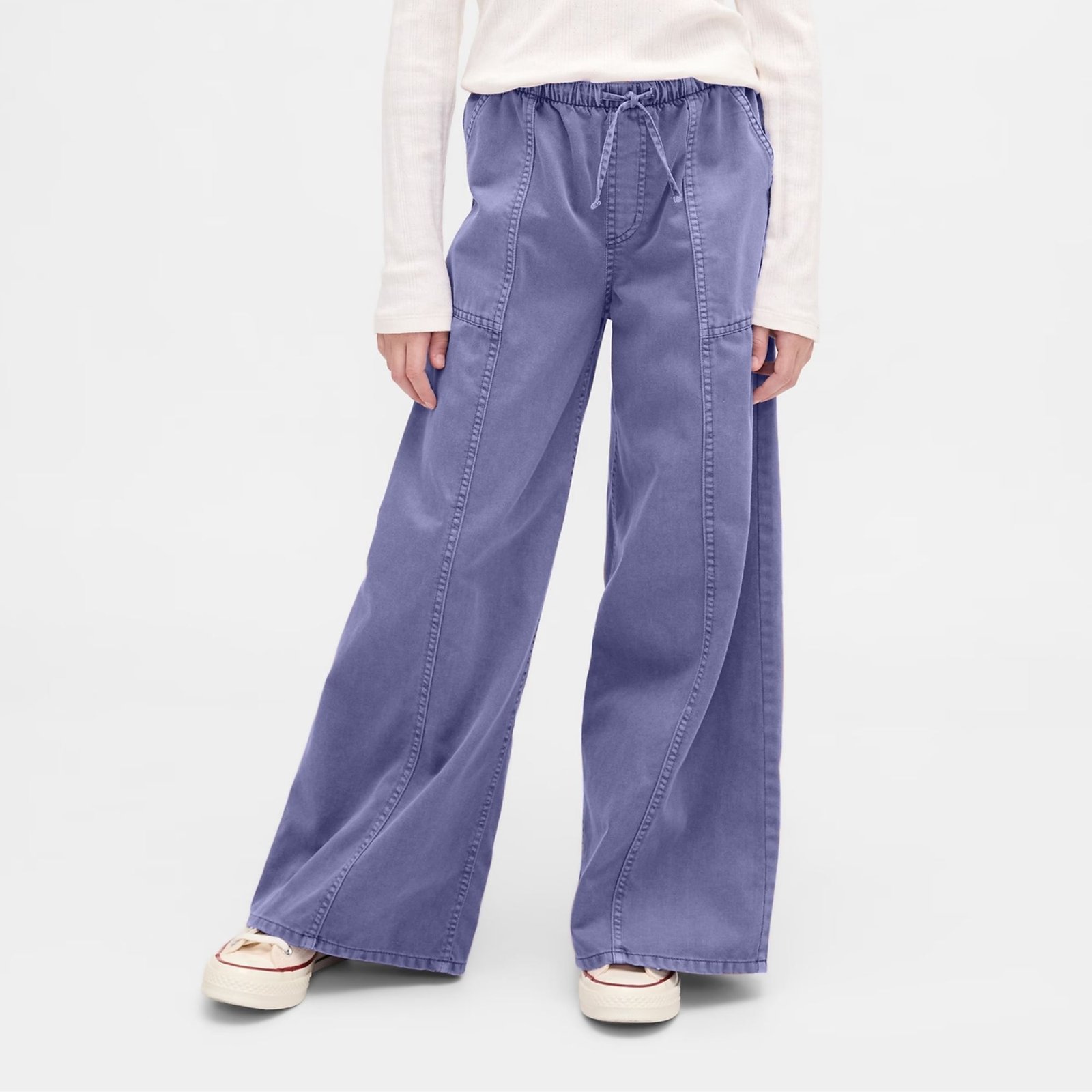 – Elastic waist with slash pockets on the front and patch pockets on the back